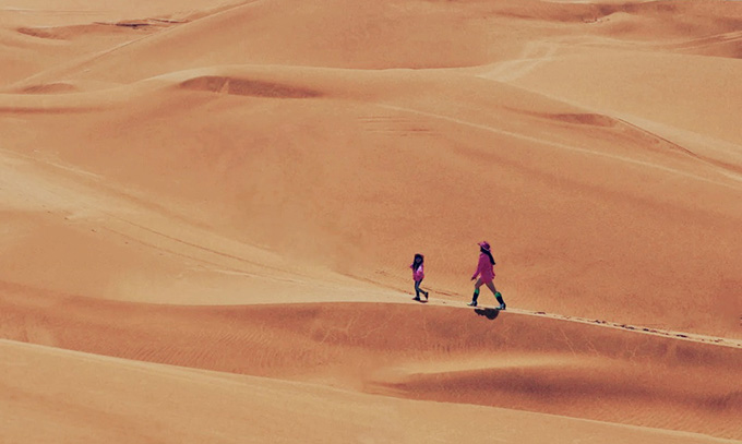 17:30-20:30前往【库木塔格沙漠景区】,这里不止有沙丘,还有壮美的沙山,阳光下金色的沙山雄浑壮观,这里的沙子柔软细腻,赤脚踩在沙上,感觉身心都很温暖。拿出我们提前准备好的滑沙板,从沙山上“呲溜”一下滑下来,小朋友们都乐此不疲。也可以选择为小朋友单独扎一个彩色的帐篷,也是一段美妙的回忆哦。